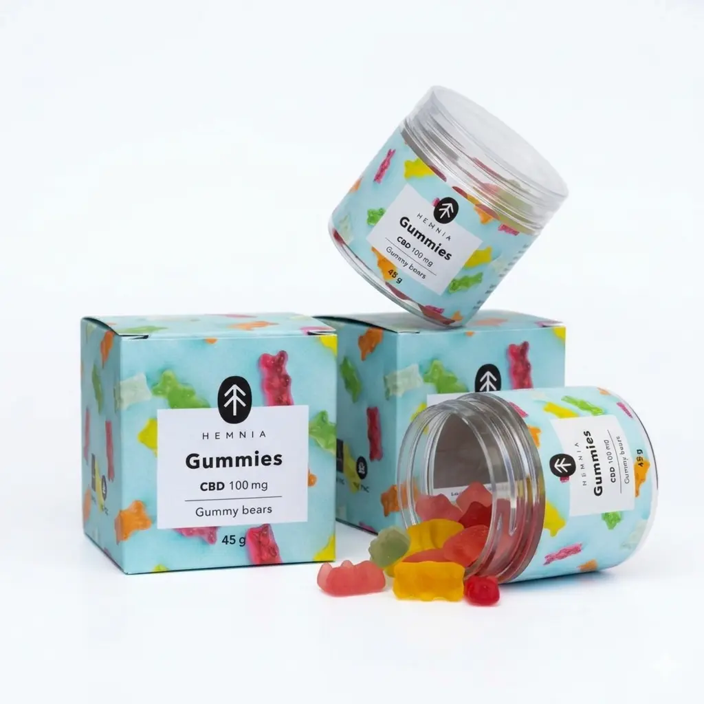 Selling CBD gummies → Sealed tuck-end box with tamper-evident tab and food-safe inner liner. Meets child-resistance requirements in CA, CO, MI.