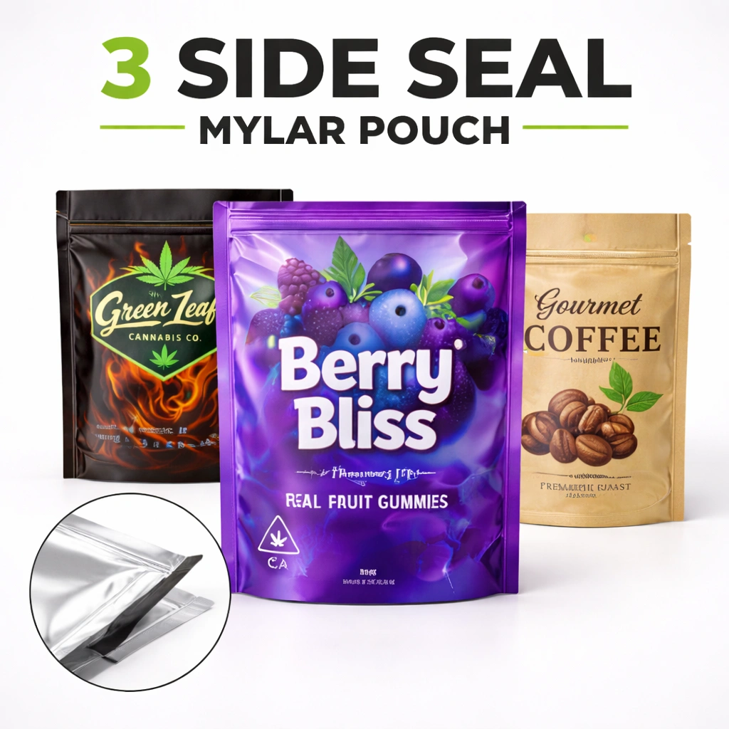 Urgent Custom Boxes customizes 3 side seal pouches by matching size, film structure, barrier level, notch position, hang holes, finish and print layout to your product list, so the same flat pouch system supports multiple SKUs and campaigns.