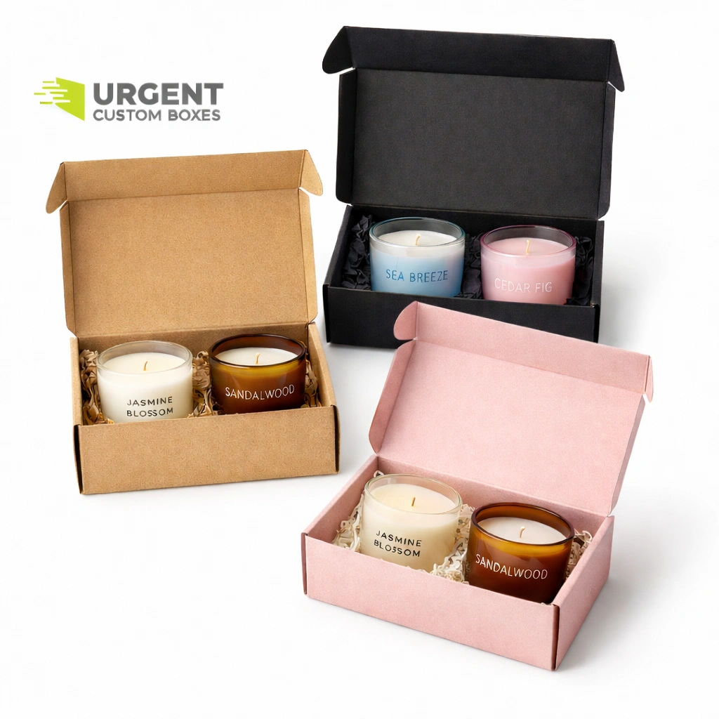 Candle subscription brands rely on packaging that can handle repeated shipments and changing scent lineups. Urgent Custom Boxes designs subscription-ready packaging that fits your jars or tins and helps maintain a positive unboxing experience for long-term subscribers.