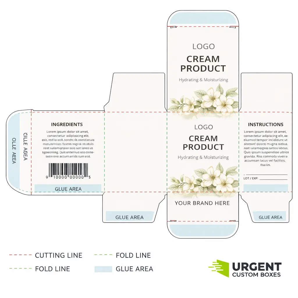 Custom cream boxes are printed cartons sized precisely for cream jars, tubes, and pumps. They protect the container, present your skincare or derma brand, and provide space for ingredients, usage instructions, batch codes, and claims in a clean, readable layout for retail and e-commerce.
