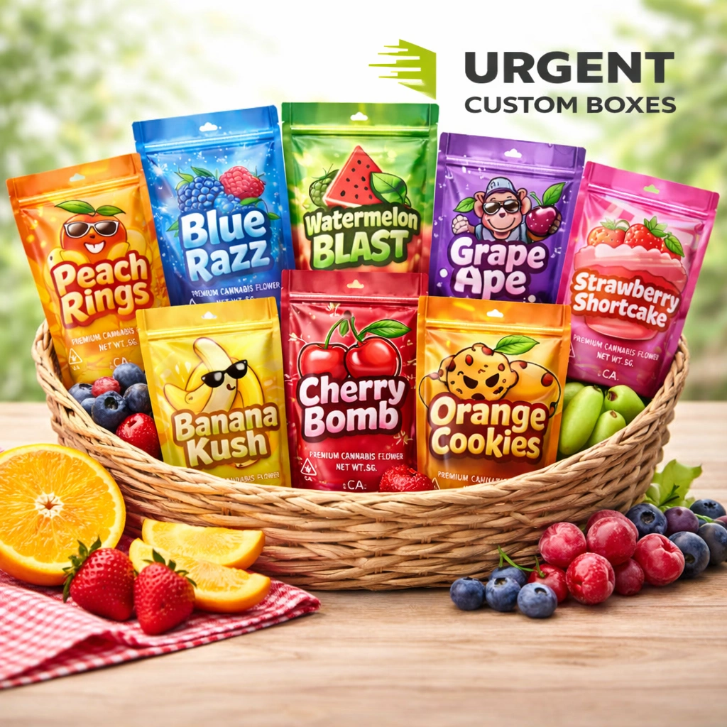 Custom flavored weed bags are high-barrier Mylar pouches printed and specced around flavored cannabis products, combining smell-proof protection, flavor storytelling, and compliance data for strain type, potency, and infusion details.