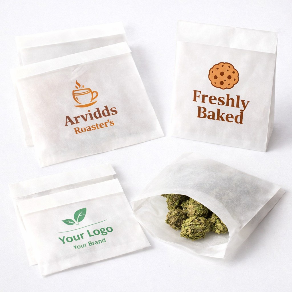 Custom glassine bags are semi-transparent, grease-resistant paper bags made from smooth, supercalendered pulp. They showcase products while protecting them from dust, fingerprints and grease, giving you a minimalist, eco-forward alternative to plastic for packaging stationery, prints, wax melts and bakery.