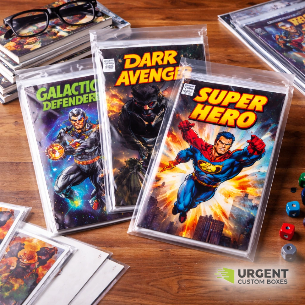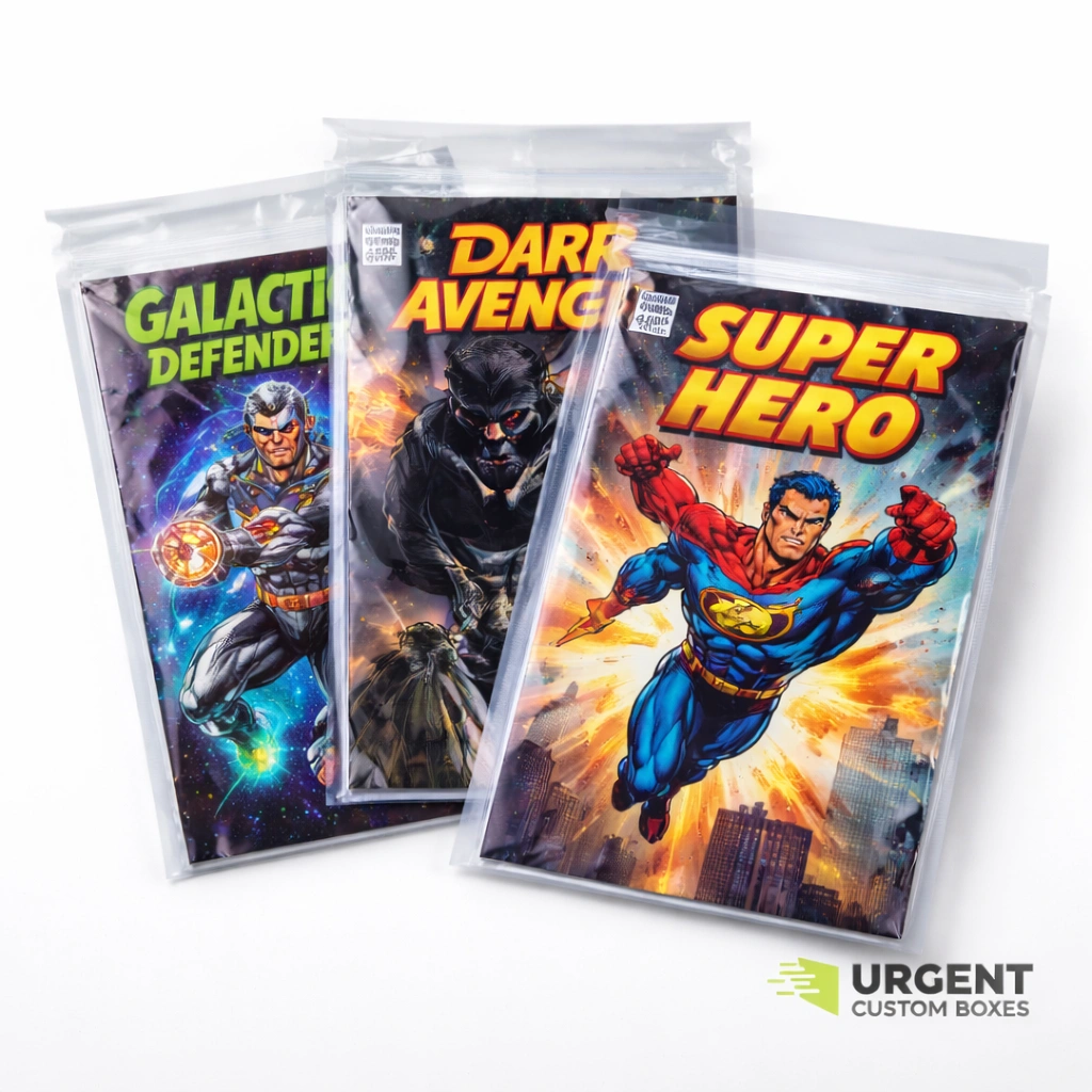 Custom Mylar comic bags are clear, archival pouches made from polyester film, sized specifically for comic books. They protect issues from dust, fingerprints and UV exposure, while optional custom printing lets you brand bags for shops, publishers, variants or special releases.