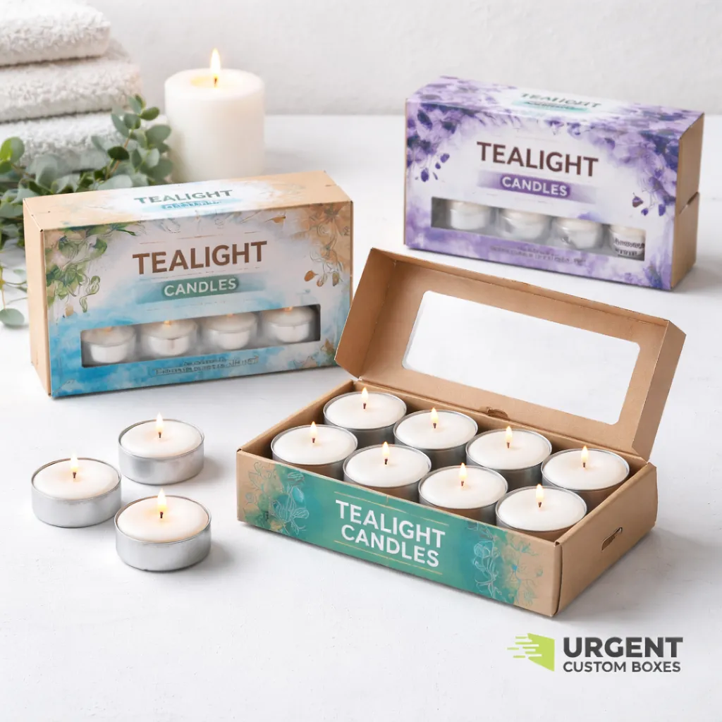 Tealight candles are often sold in sets, which means the packaging needs to hold multiple pieces securely. Urgent Custom Boxes provides tealight boxes that keep cups in order, prevent spills, and present sets neatly for shops and online customers.
