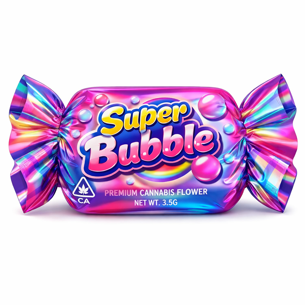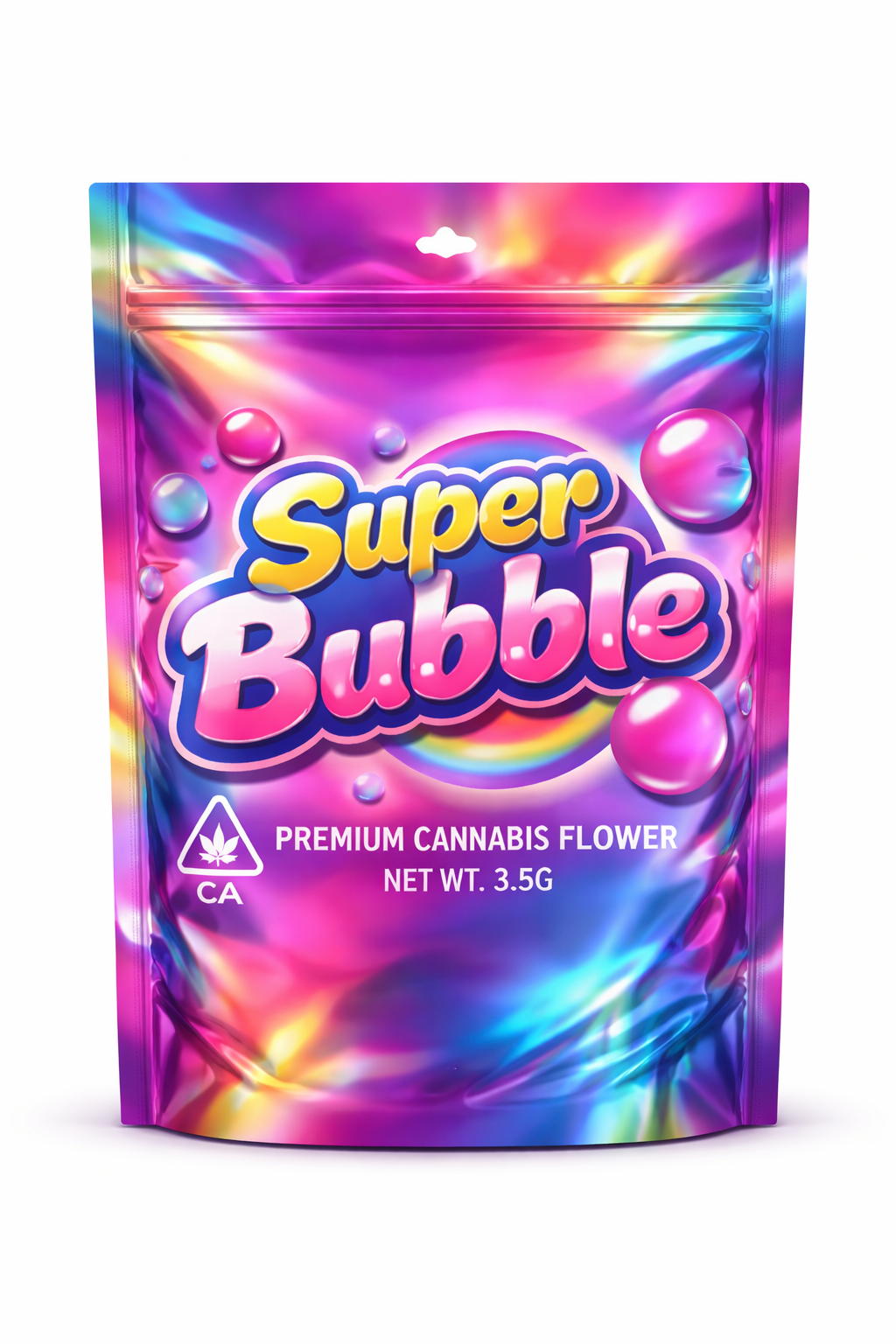 Super Bubble 3.5g Mylar bags work best for Super Bubble flower, smalls, and candy-forward cuts. They help brands keep a unified look across eighths, drops, and collaborations while using the same structural bag specification.