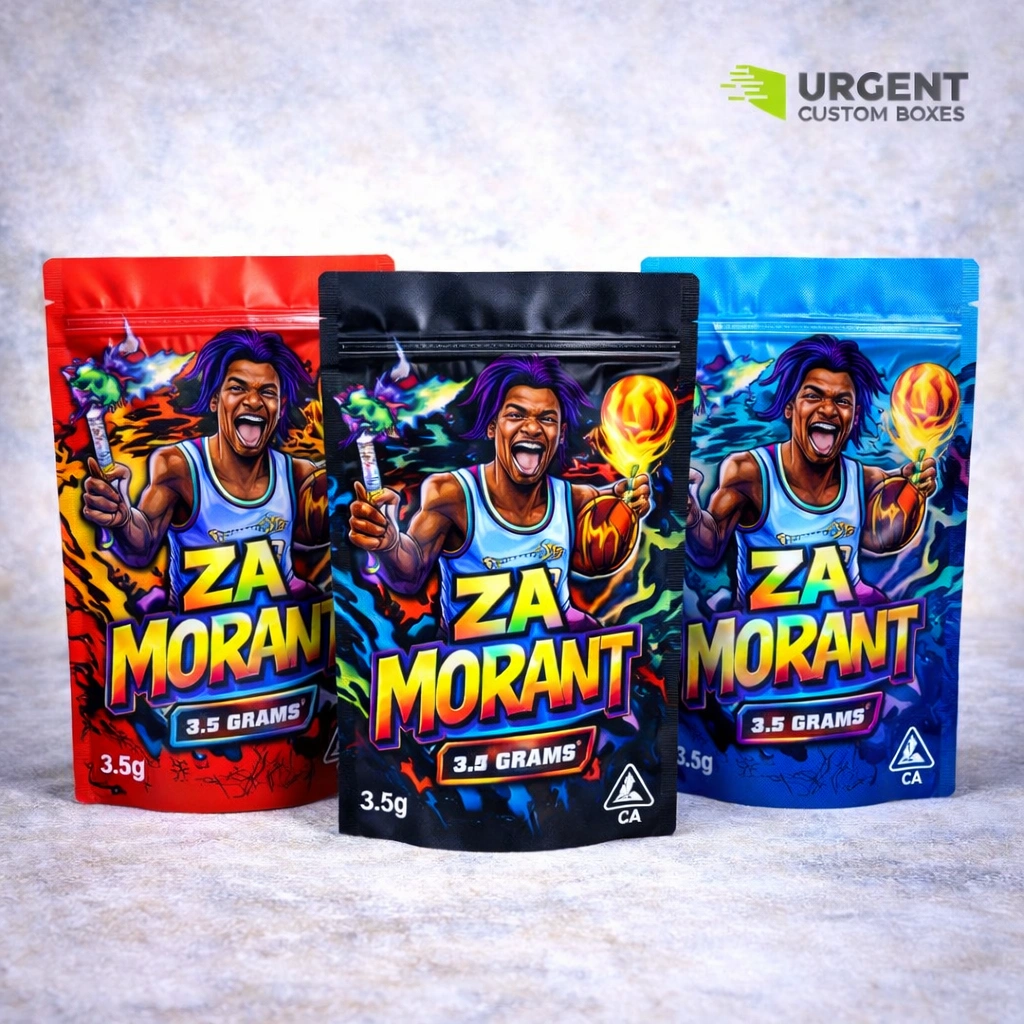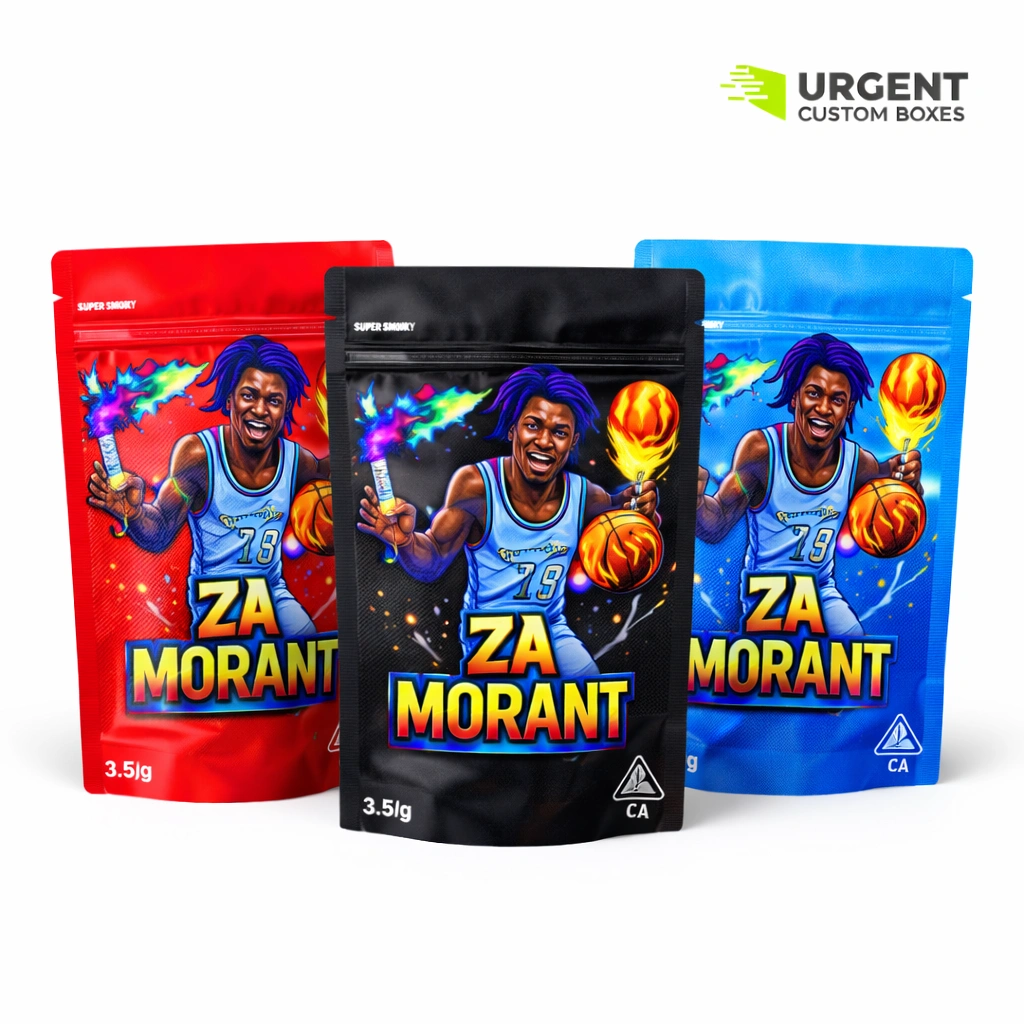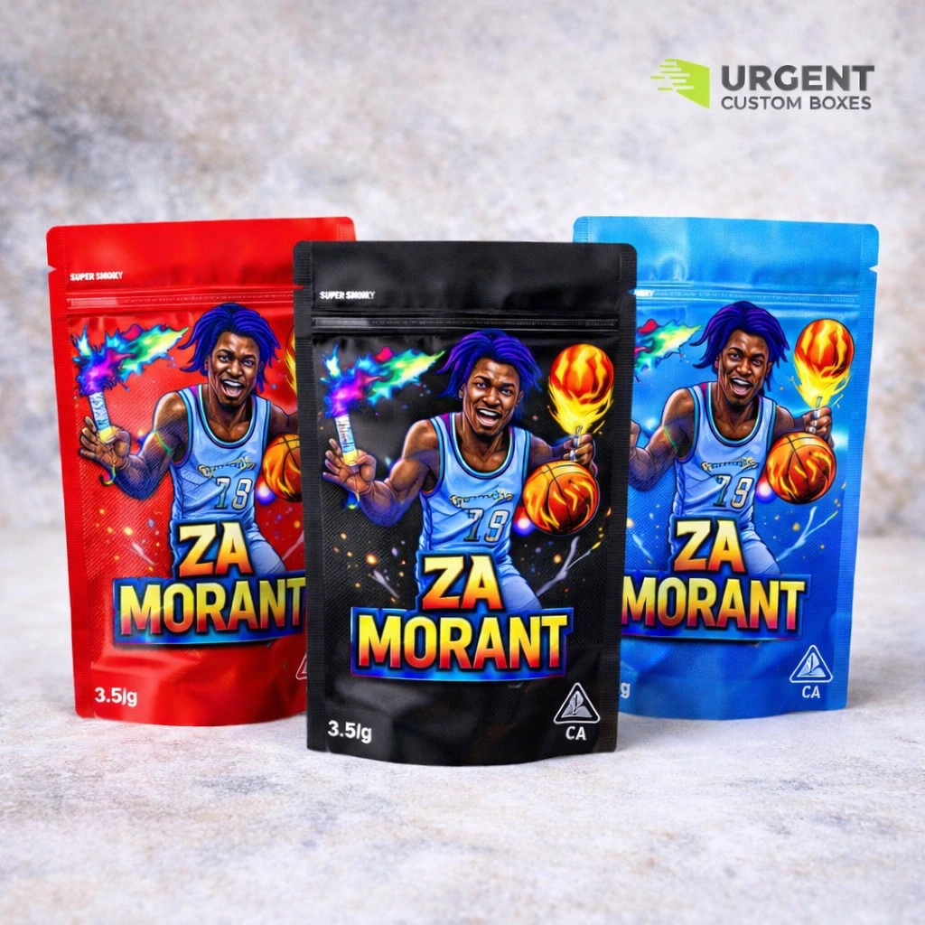 Za Morant 3.5g custom UV sticker Mylar bags are small, smell-proof cannabis pouches paired with
